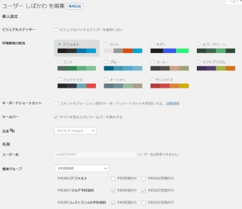 ワードプレスの管理画面の左メニュー、ユーザー一覧>ユーザー編集もしくは、ユーザーの新規追加画面より「権限グループ」にて予約管理者を選択します。